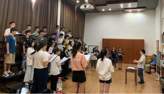 小课琴房,琴声、歌声,声声入耳。安静了两个月的琴房,迎来昔日师生,好不热闹。排练厅里,器乐合奏、人声合唱,交相辉映,延续着开学前大艺节备赛师生的排练热情和专业执着。