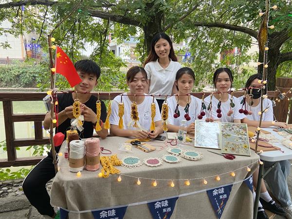 国庆期间,衢州市柯城区余东村、妙源未来乡村活动精彩纷呈,文管系师生利用长假扎根乡村,为余东村国庆活动增添活力。在余东未来乡村,师生早早到达非遗市集支起摊点,售卖先前针对余东未来乡村发展所设计开发的《编织》《套色剪纸》《扎染》和《水印木刻版画》四门课程制作的非遗手工艺品。每个摊位都支持现场体验教学,来往游客不仅可以享受自己动手制作的乐趣,还能获得精美的非遗手工艺品,妙趣横生。在乡村音乐节上,我系文化员班的学生精彩献唱,活力四射,让余东村村民感受到我系学子的青春风采。
