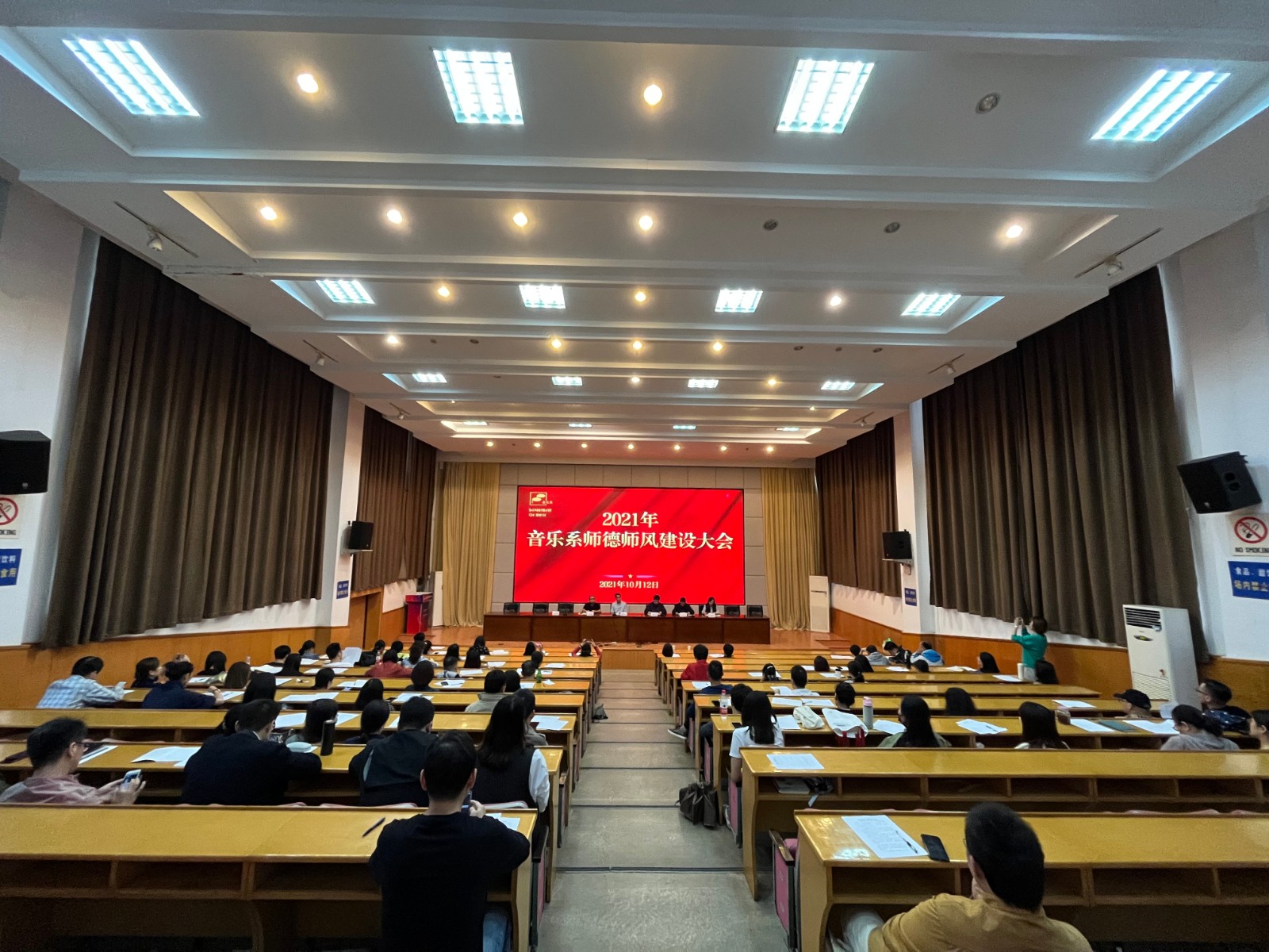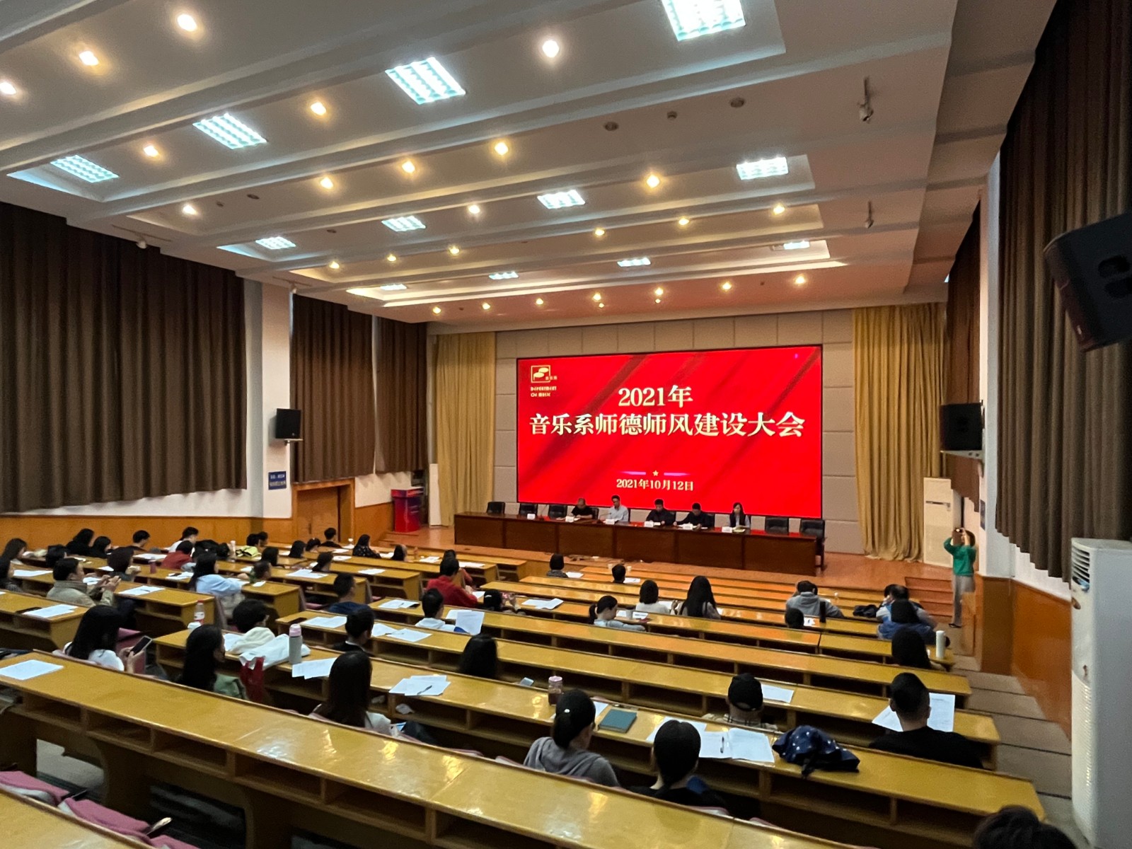 根据学校《关于开展师德专题教育活动的实施方案》部署,10月12日,音乐系在图信中心报告厅开展2021年师德师风建设集中行动。音乐系全体专兼职教师参加,党总支常务专职副书记谢志勇主持。
