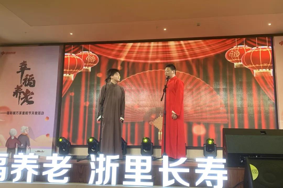 本次活动是落实国家幸福养老战略,体现社会对老年人关爱的公益活动。我校戏剧系表演艺术专业师生们带去了群口快板《天安门广场看升旗》,同学们表演的铿锵有力,整齐划一,瞬间吸引了现场观众。当《我和我的祖国》歌声响起时,台下的爷爷奶奶们也跟着合唱起来,点燃了大家的爱国情怀。还有相声《欢声笑语》等节目,内容丰富,形式多样。