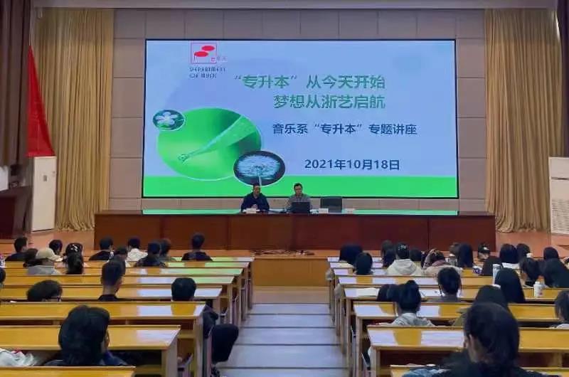 10月18日,音乐系在图信中心报告厅举行专升本考试专题讲座。学工部(学生处)招生就业办公室副主任顾斌主讲,音乐系全体21级高职新生参加,音乐系党总支专职副书记刘梦伟主持讲座。