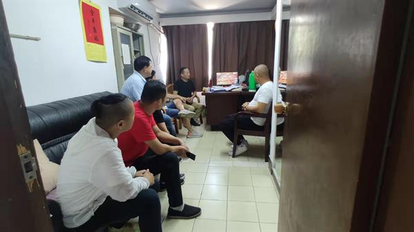总务处资产经营公司党支部党员和教职工在会议室观看视频直播