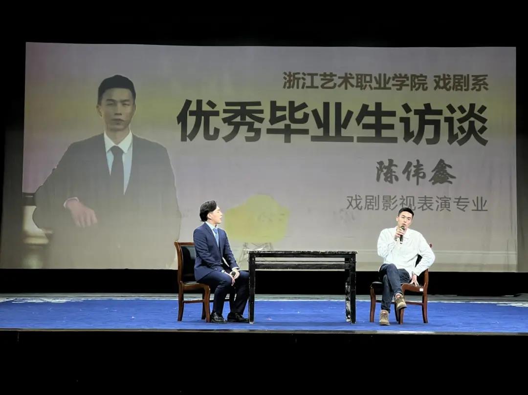 在问答互动时,陈伟鑫提到了自己的艺考经历,从浙艺的“备录取”到北京国际电影节的“最佳男主角”,从中付出的努力无法想象。他的一切都是从零开始,无论是从播音转战表演,还是剧团的工作,他都是一步一步稳扎稳打地走,中间的挫折与苦闷他都一一熬过。陈伟鑫还向同学们分享了一句话“人生何止钱塘江,迟开的花会更香”,以此告诉同学们坚持初心、砥砺前行的重要性。
