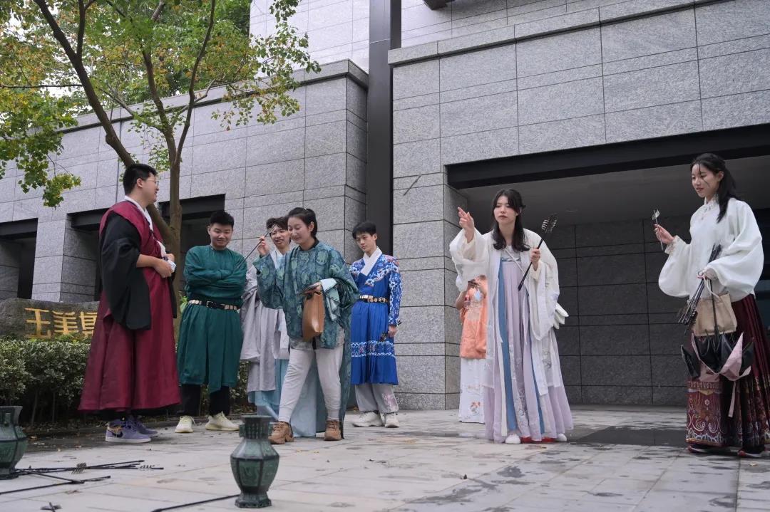 人无礼则不生,事无礼则不成,国无礼则不宁。活动的最后一站,师生们来到了位于吴山广场的清创客厅。由苏西子老师进行汉服礼仪的讲授,她以传统礼仪中的“君子九容”为出发点,带领大家了解、学习和感受中华传统礼仪的魅力。讲授过程中,苏西子对正确的作揖方式进行了详细讲解和现场示范,并与现场师生进行了互动,让大家在知礼行礼中感受中国传统文化的魅力。