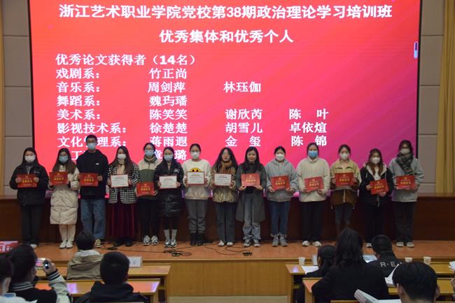 本期培训班共有167位学员参加培训,161位学员通过考核。仪式上,宣读38期政治理论学习培训班结业学员名单,对党校优秀集体、优秀班主任、优秀学员、优秀论文获得者、第18届党校学员论坛暨“奋进新征程担当新使命,争做新时代文艺工作者”主题微型党课比赛获奖者进行了表彰。