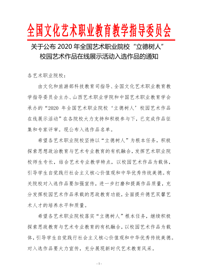 我校13个作品入选2020年全国艺术职业院校 “立德树人”校园艺术作品在线展示活动