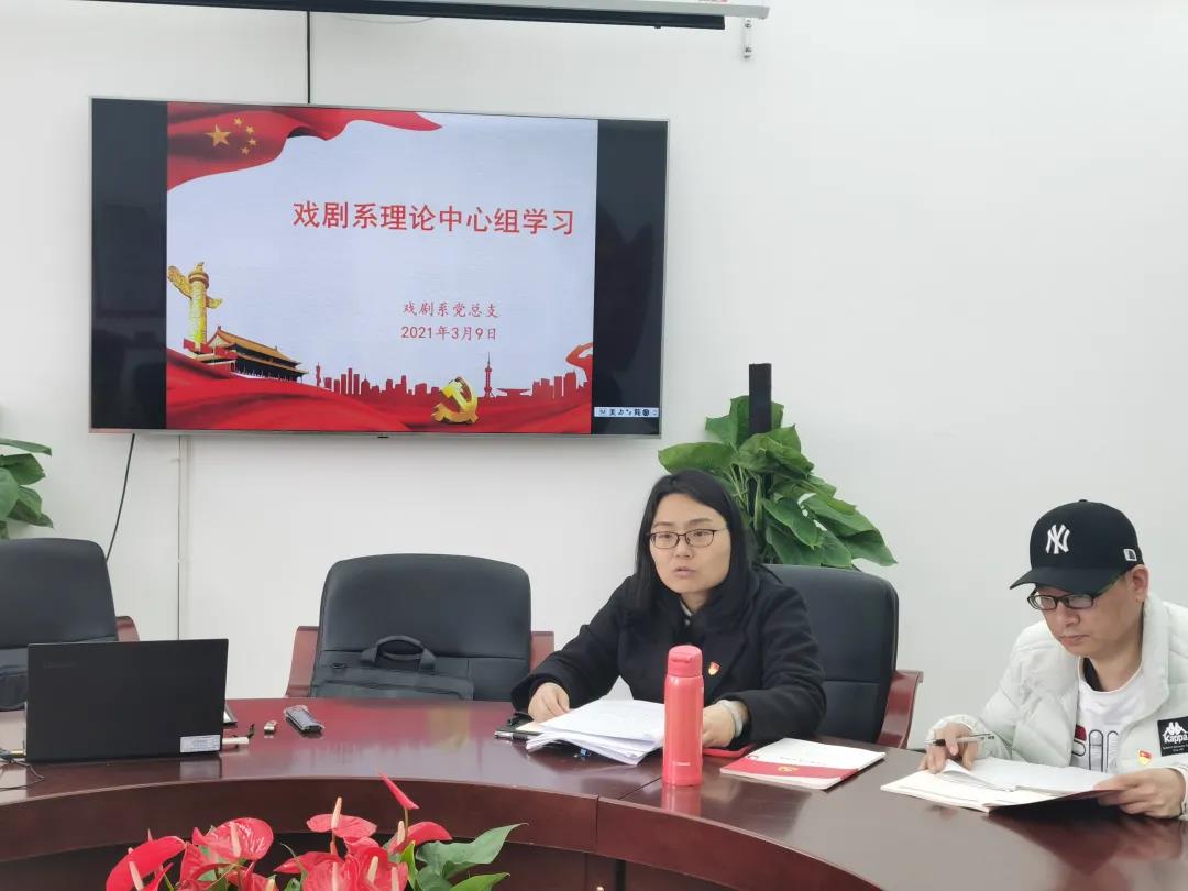 3月9日,戏剧系党总支在系会议室组织开展理论中心组学习,重点学习全国两会精神和党史学习教育等内容。戏剧系班子成员、全体师生党员参会。