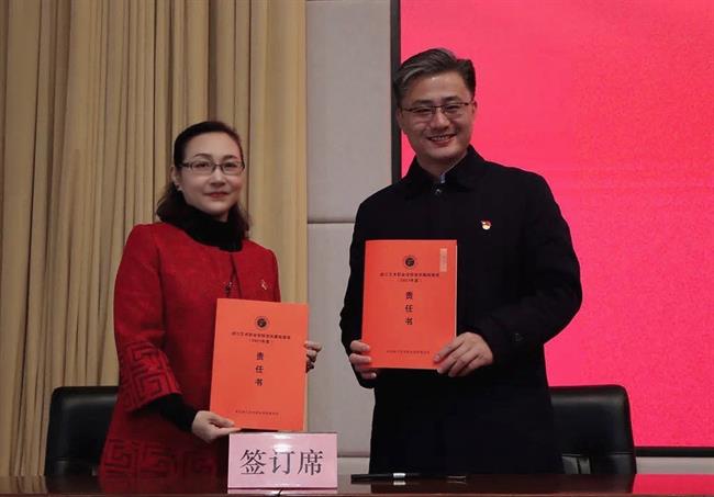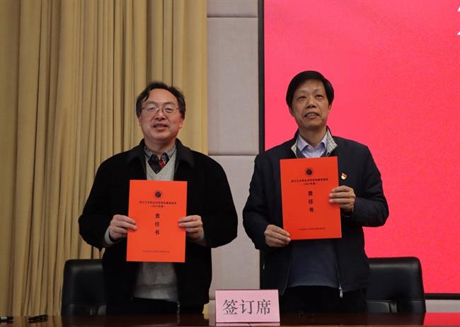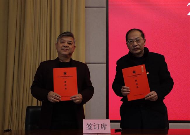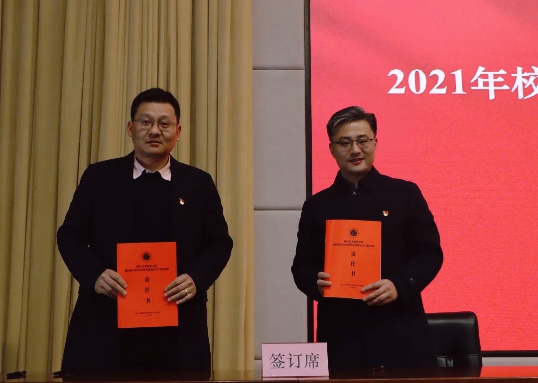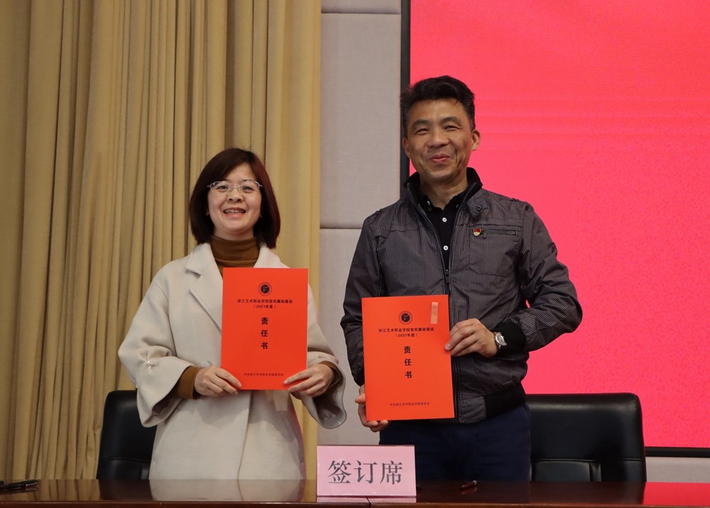 会上,戏曲学院、音乐系、影视技术系、文化管理系和学工部等代表现场签订2021年度党风廉政建设责任书、意识形态工作责任书、校园治安综合治理和消防安全目标管理责任书。