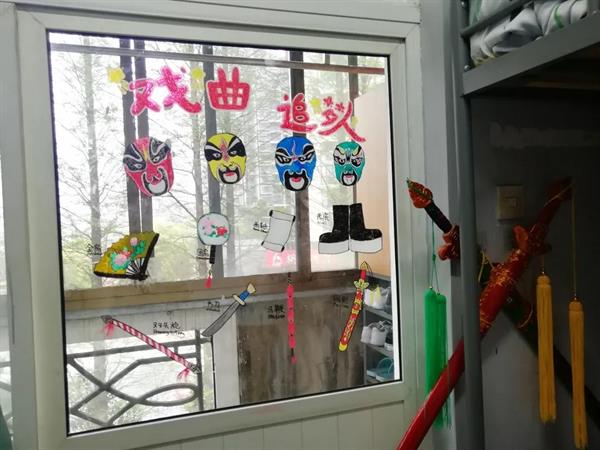 2019级小百花班学生周润琪说:“寝室就是我们在学校的家。美化寝室时,我们突出戏曲主题,添加了各种戏曲元素、戏曲人物,张贴了“四功五法”等戏曲特有的小知识和励志的小句子,通过美化活动把我们的生活空间变得更有戏曲氛围。”
