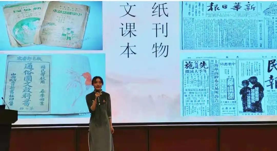 闻人柯婷带领大家唱响红色赞歌《没有共产党就没有新中国》,深情讲述我们为何要唱革命传统歌曲,有哪些革命传统歌曲;回顾苦难的历史,纪念那些奋起抗争的身影。号召广大青年在民族复兴时,仍然要唱革命传统歌曲,赓续红色精神,汲取奋进力量。