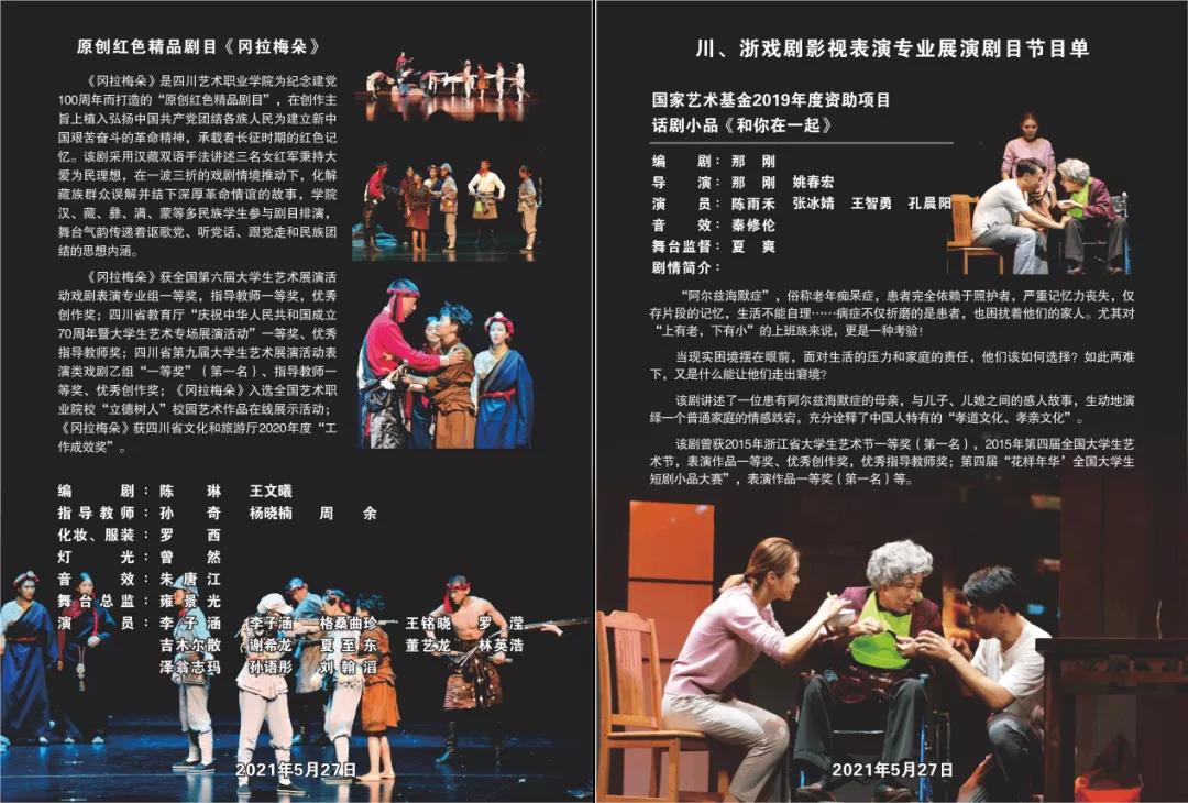 5月27日-28日,由中国艺术职业教育学会主办,中国艺术职业教育学会戏剧与影视专委会、四川艺术职业学院承办的戏剧影视表演人才改革创新经验交流暨戏剧影视表演专业展演交流会在四川成都召开。会议旨在学习贯彻习近平总书记对职业教育工作的重要指示和职教大会精神,坚持立德树人,深化产教融合、校企合作,促进艺术职业院校戏剧影视表演专业建设发展。