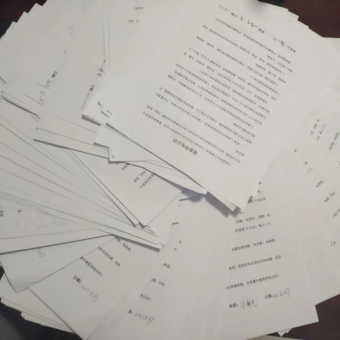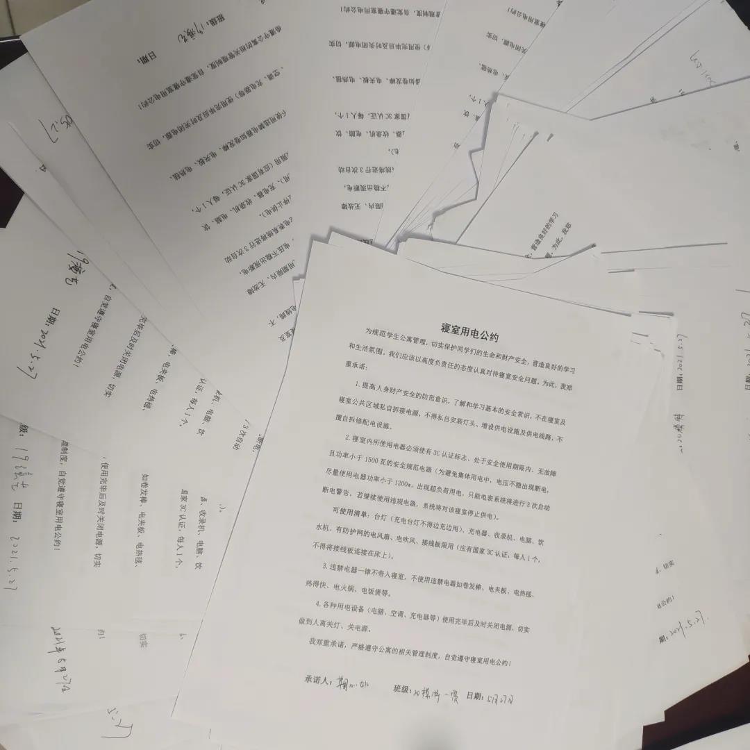 讲座结束后,全体同学签订了寝室安全用电公约。火灾远离你我,幸福平安生活。此次讲座使全体学生对消防安全知识有了更深入的了解,更加深刻地体会到消防安全的重要性,对创建“平安校园”起到了积极的助推作用。