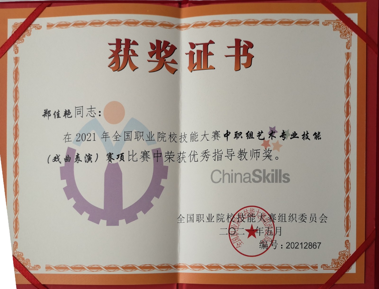 6月18日至22日,2021年全国职业院校技能大赛在山东烟台举行,来自全国专业院校的24支代表队72名选手参赛,激烈角逐各个奖项。在刚刚结束的颁奖仪式上,浙江省参赛队、浙艺戏曲专业学子杨咏琪、丁沛孜、卢笑恬三位同学表现出色,荣获全国一等奖,戏曲学院教师郑佳艳、钱丽文获优秀指导教师奖。