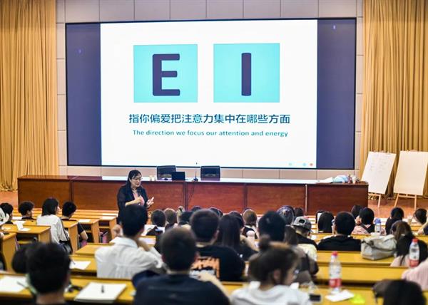 张静从四个方面讲述了如何结合天赋优势来助力职业发展。一是运用荣格的“性格类型”探索自己的天性。张静首先抛出“天生性格是什么”的问题与同学们进行互动,让同学们在纸上分别用左右手写下自己的名字,从而让同学体会到天生性格就像是用手习惯。老师与同学们围绕四种偏好:精力、感知、生活方式、判断,进行了趣味互动让同学们在完成自我探索的过程中寻找“本我”。二是天性与职业偏好的关系。张静用同学们上一阶段探索出来的结果具体分析了哪些天性适合从事哪些职业,接着同学们分小组讨论深入挖掘了性格类型给自己带来的优势,同时不断补足自己的缺点。三是初入职场如何脱颖而出。组织选拔人才有四个主要方向:知识技能、特质个性、核心能力素质、动力匹配。其中动力匹配被看的越来越重要,这需要工作者的内驱力、内心的渴望和对工作热爱。根据光辉国际LA101领导力素质模型库的内容改编:客户导向、解决问题、追求成效、团队合作、即时学习、毅力都是非常重要的。四是职业生涯探索的无极限模型。张静鼓励同学们用新的“眼镜”看待工作工作不仅仅是谋生手段,它还是成长的平台、实现自我价值的方式、创造的管道、探索和表达生命的意义。从小就要学会去探索了解自己今后要做什么,从内心了解自己的天赋,自己适合做什么;多去寻找“职业明星访”通过他们了解一个职业,不断尝试后再次回归到自己的内心,找到真正自己想要的能投入热情的工作。