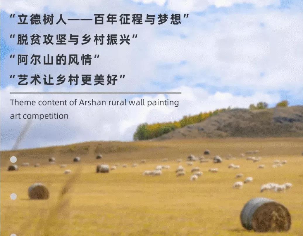 阿尔山乡村墙绘艺术大赛是中国艺术职业教育学会“立德树人——中国精神”系列活动之一,也是2021年阿尔山市明水河镇西口村系列节庆赛事活动之一。大赛以“墙绘美好生活,助推乡村振兴”为主题,围绕“立德树人、中国精神——百年征程与梦想”、“脱贫攻坚与乡村振兴”、“阿尔山的风情”、“艺术让乡村更美好”四个板块展开。