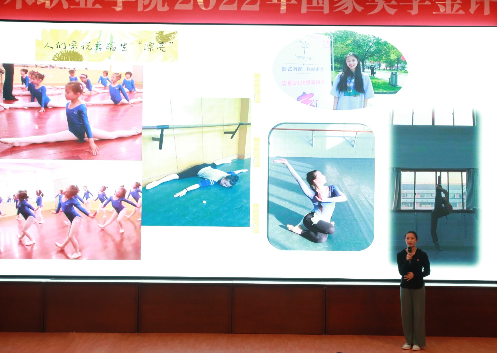 由各二级学院选拔推荐的7名候选同学参加了现场展示。有不忘初心、厚积薄发、守护梦想的俞嘉雯同学,有赓续黄龙文脉、传承浙艺初心的赵欣妮同学,有通过蝶变、探索创融、不断践行传承使命的左彤彤同学,有用力生长拿作品滋养自己、用温情回馈家乡的张锶悦同学,有以梦为马、此生与戏结缘的李梦凡同学,有心系乡村、毅然投身基层文化建设、勇担共富使命的许愿同学,有深耕舞坛十余年、披荆斩棘百炼成钢的学生舞者葛子仪同学。她们结合专业学习、社会实践、工作和生活经历,从理想信念、专业素养、道德风尚、社会工作与志愿服务等方面讲述自己在浙艺学习的收获和心得,精彩的演讲、丰富的经历和成功的收获,感染了现场师生。