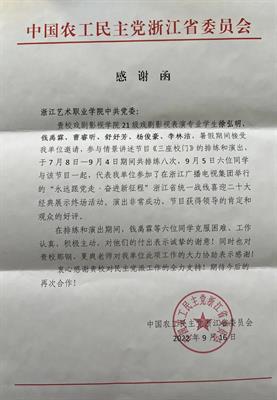 第一次参加浙江省统一战线喜迎二十大经典展示活动,对我来说印象十分深刻,因为这是我第一次去到浙江广播电视台。每一次选定时间、聚齐大家参加排练都是很不容易的,剧情也一直在反复修改,但好在舞台上的呈现十分精彩,也得到了各位老师和领导的肯定,这于我而言是一次十分难忘的经历。
