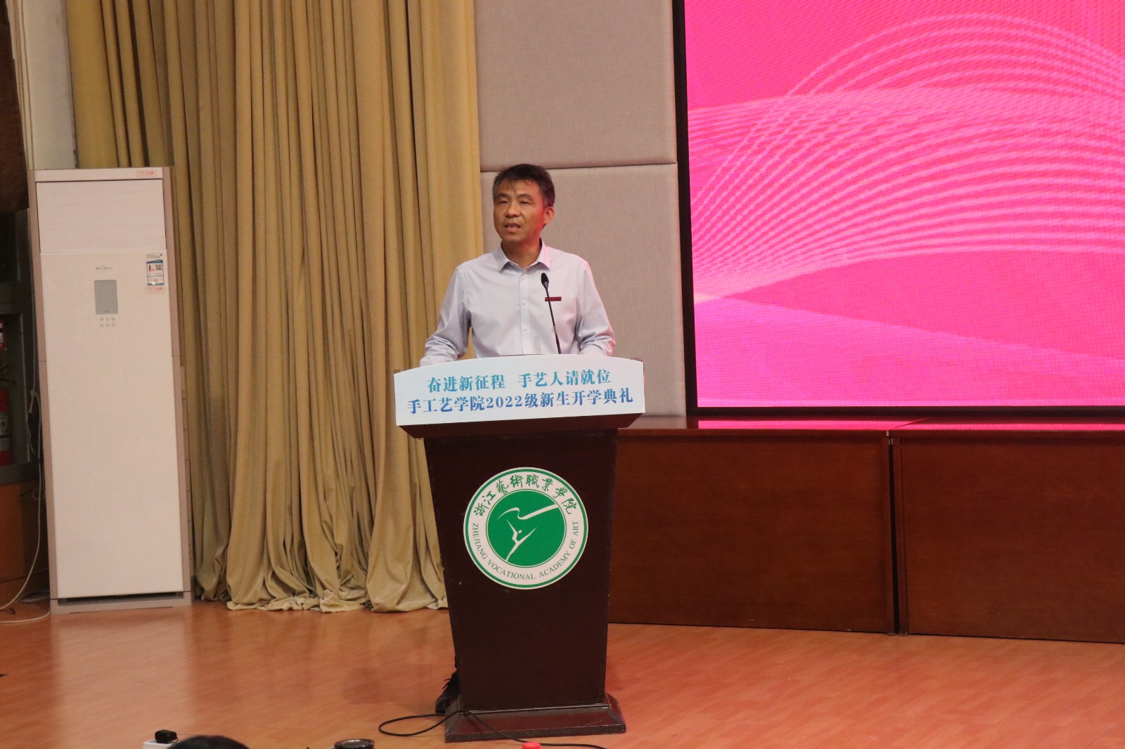 10月24日,手工艺学院2022级新生开学典礼在图信报告厅举行。校党委委员、副院长沈军甫,手工艺学院全体教师及2022级新生参加。典礼由手工艺学院党总支专职副书记王筱芽主持。