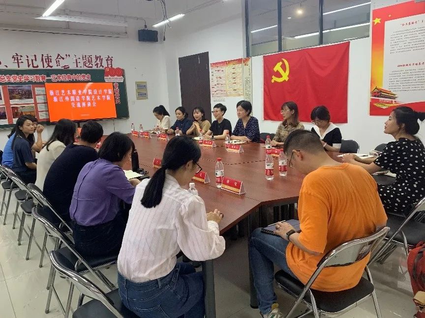 为增进校际合作交流,提升人才培养质量,加快落实“双高”校建设各项任务,近日,设计学院党总支书记汪琳、副院长何佳玮、广告艺术设计及环境艺术设计教研室部分教师赴浙江外国语学院考察交流。浙江外国语学院艺术学院院长李敏、党总支书记胡晓红、副院长王峰及相关系部专业负责人参加了交流座谈会。