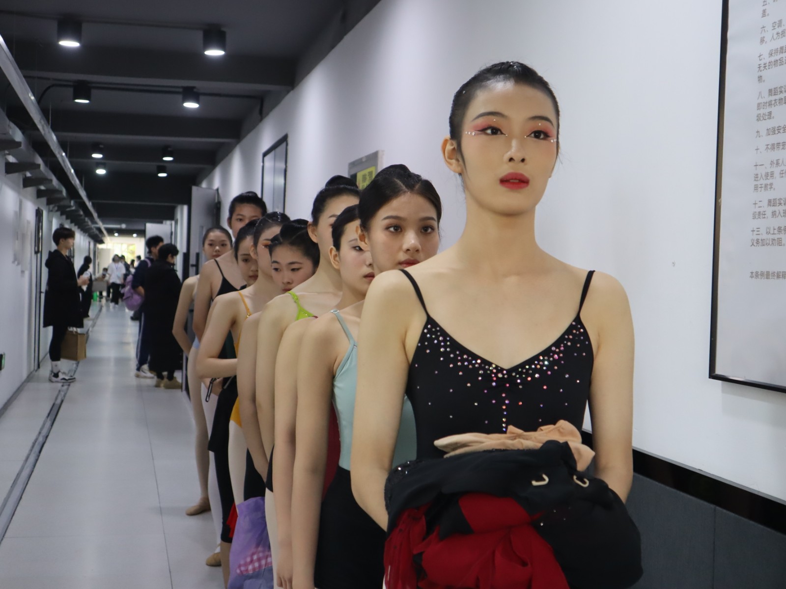 考试前,考场外的走廊里,考生们整装待发,做热身运动,调整心态,不断深呼吸。一个个青春靓丽的身影在为实现艺术梦想冲刺。