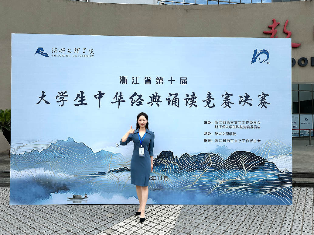 近日,由浙江省教育厅、浙江省大学生科技竞赛委员会主办的“浙江省第十届大学生中华经典诵读竞赛”决赛在绍兴文理学院圆满结束。大赛旨在传承和弘扬中华民族优秀传统文化,激发学生对博大精深的中华文化和汉语言文学的学习和热爱之情,进一步提升学生的人文素养。