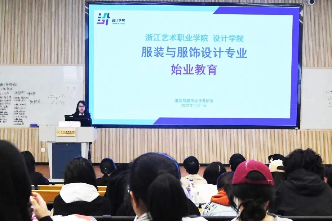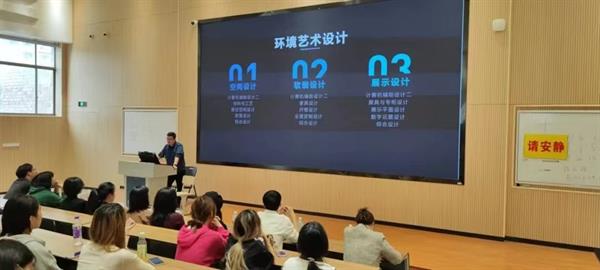 11月2日中午,环境艺术设计专业新生始业教育在7号楼阶梯二教室举行。环境艺术设计专业教研室主任陶靓子介绍了教师团队并对新同学提出思想建议。环境艺术设计专业专任教师毕存碧向同学们介绍了环境艺术设计专业课程、方向特色、职业岗位实践、1+x证书等内容,为新同学展示了环境艺术设计专业的基本架构和特色。本专业旨在为社会培养居住空间设计、公共空间设计、软装设计、家具设计、家居工艺设计、展具设计、会展设计展陈设计、综合设计等工作的高素质技术技能人才。
