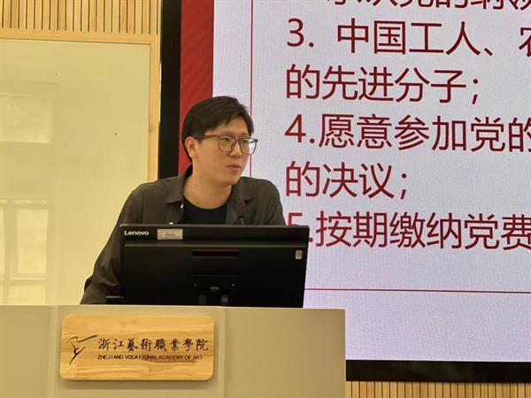 学生党支部书记龚林峰向同学们介绍了设计学院学生党支部的基本情况,讲解了发展党员流程,明确了入党申请人、入党积极分子、党员发展对象、预备党员、正式党员的不同,以及在各个阶段同学们在思想和行动上应该达到的要求和标准,为新同学积极加入党组织提供了指导。