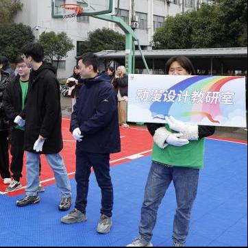 伴随着激昂的《运动员进行曲》,设计学院首届趣味运动会的开幕仪式以师生拔河比赛的形式启动。由设计学院舞台艺术设计与制作专业、服装与服饰设计专业、广告艺术设计专业、动漫设计专业、环境艺术设计专业、造型基础(附中)专业师生以及“七号舍友”代表组成的七支拔河队伍摩拳擦掌,各展风采,嘹亮地喊出属于他们的口号。