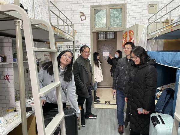 学院领导班子走访了学生公寓,亲切慰问同学们,了解同学们的寒假生活,强调疫情防控、寝室安全等,让同学们感受到了学院的关心与关怀。