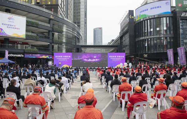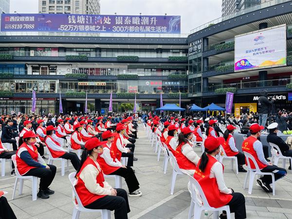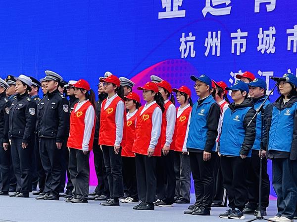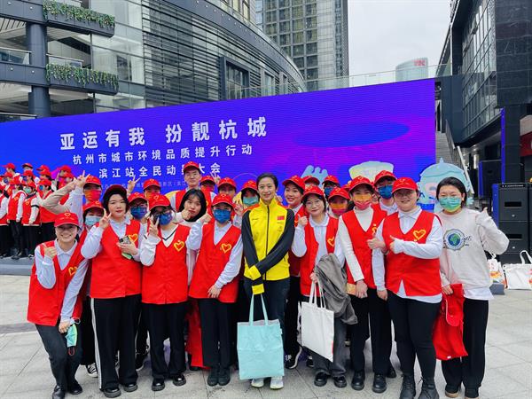 4月1日,由杭州市城管局和高新区(滨江)共同举办的“亚运有我  扮靓杭城”杭州市城市环境品质提升行动滨江站全民动员大会在星光大道举行。我校戏剧影视学院选派35名学生组成“艺光印象”志愿服务队参加。