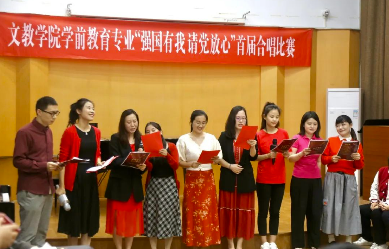 为培养专业能力强、综合素质高的学前教育专业人才,奏响“喜迎二十大 奋进新征程”乐章,文教学院举办首届“强国有我 请党放心”红歌合唱比赛。本次比赛分6组演唱,每组两曲,同学们用饱满的精神面貌,积极的演唱状态呈现出一场精彩的演出。