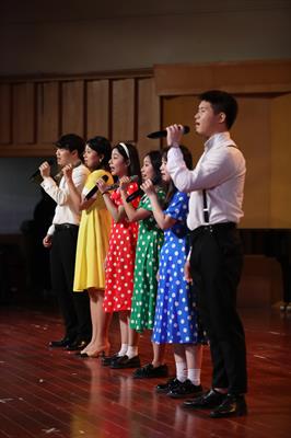 此次音乐会由学生们独立完成,自由寻找组合成员、自行选择作品、自主分配声部,结合合唱课堂中所学的专业知识和技能,独立完成排练,其中不乏学生自己担任作品和声编配的节目。歌曲《平凡之路》就是由方英豪、吴馨玥、丁伊婧、耿丽洁等几位学生共同编创,将作品改编成全新的阿卡贝拉版本,令人耳目一新。