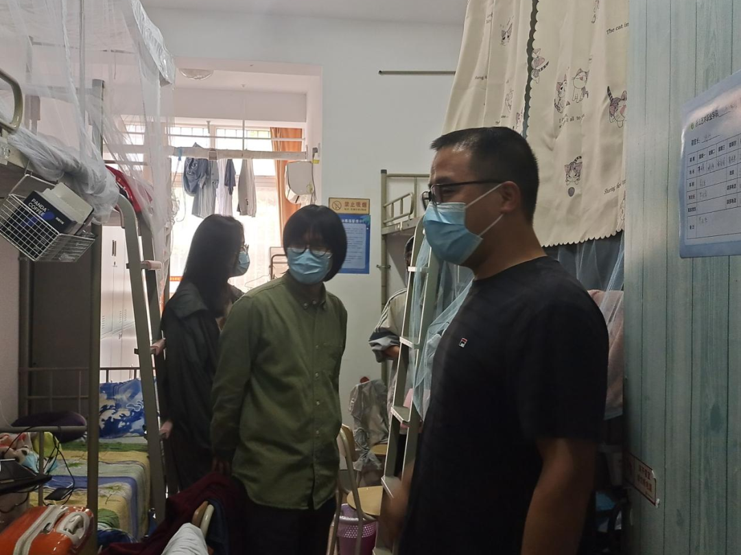 5月25日中午,老师们在走访寝室的过程中耐心解答同学们学习和生活上的各种问题,听取同学们反馈的意见和建议,协助他们解决实际困难,给学生带来“全方位的关爱”。