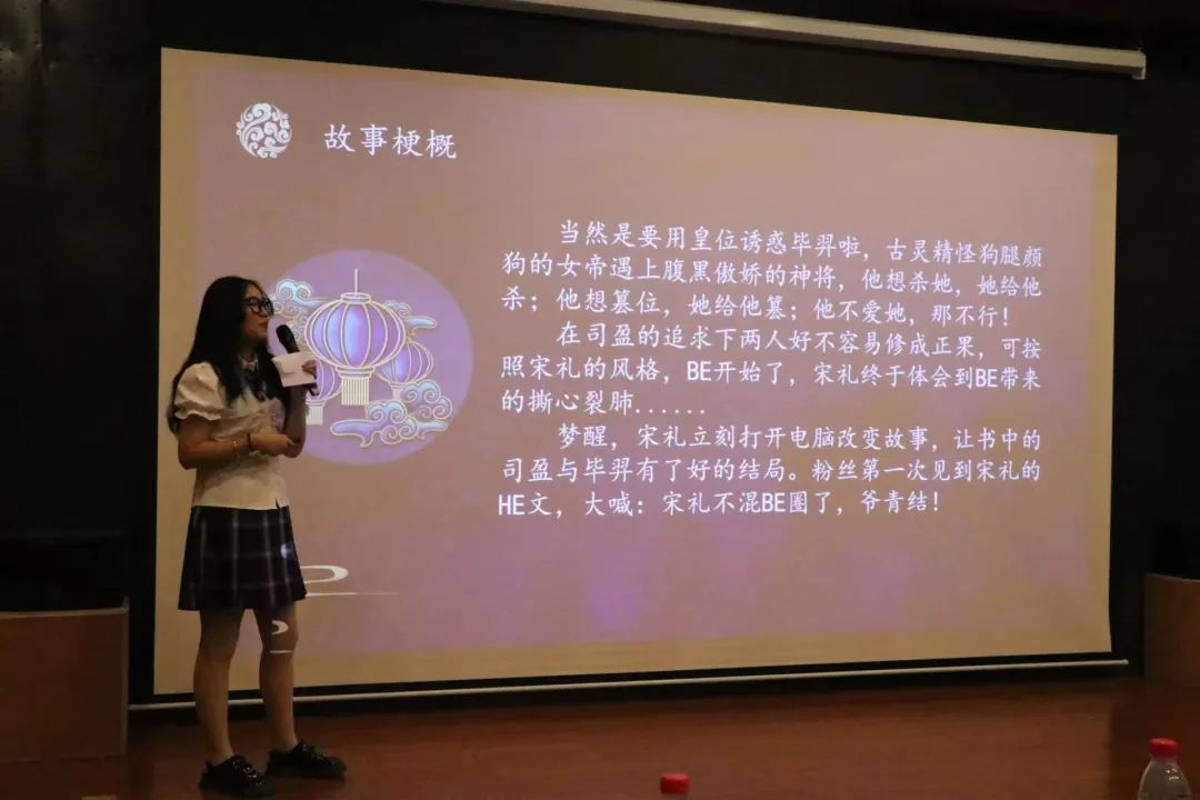 第二个汇报项目为《我在BE圈里混不下去了》,汇报人曲影以自己为原型,塑造了她的女主角宋礼,在她的故事中,知名古言 BE 写手宋礼被笔下的两个 BE 文女主“报复”,她们合力改变宋礼的梦境,送她到《腹黒将军宠女帝》的书中。宋礼穿越成书中的烂颜狗女帝一司盈,当古灵精怪狗腿颜狗的女帝遇上腹黒傲娇的神将,故事又讲如何展开?