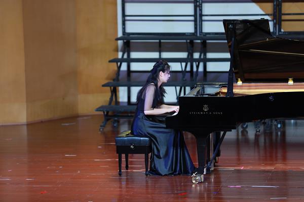陈诗瑶带来钢琴独奏拉赫玛尼诺夫改编的小提琴曲《爱之忧伤》,这首钢琴改编曲在原曲的框架中充分融入作曲家自身的风格特点,陈诗瑶从容地将曲中“悲”与“喜”交替的细腻情感为我们一一诠释。