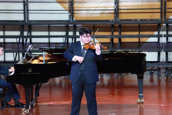 音乐会开场曲由邹李楚贤演奏莫扎特《A大调第五小提琴协奏曲(第一乐章)》,演奏风格优雅又充满克制力,热情、阳光和朝气,这是莫扎特协奏曲中最具有代表性的作品之一。钢琴伴奏由曾泽钰演奏。