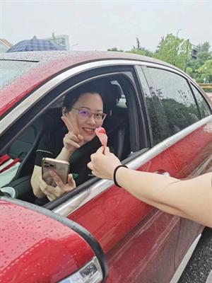 “老师您好,祝您儿童节快乐!欢迎参加中午的游园活动!”“哈哈太好了!今天我也能当一天的儿童。”早晨阴雨绵绵,浙艺校门口已经开启了六一祝福活动,学前教育专业的学生们为老师们准备了棒棒糖花束惊喜。同学们边协助保安扫码、测温,边送糖果花束,老师们看到同学们精心准备的儿童节礼物都露出了笑容,表示倍感温暖。