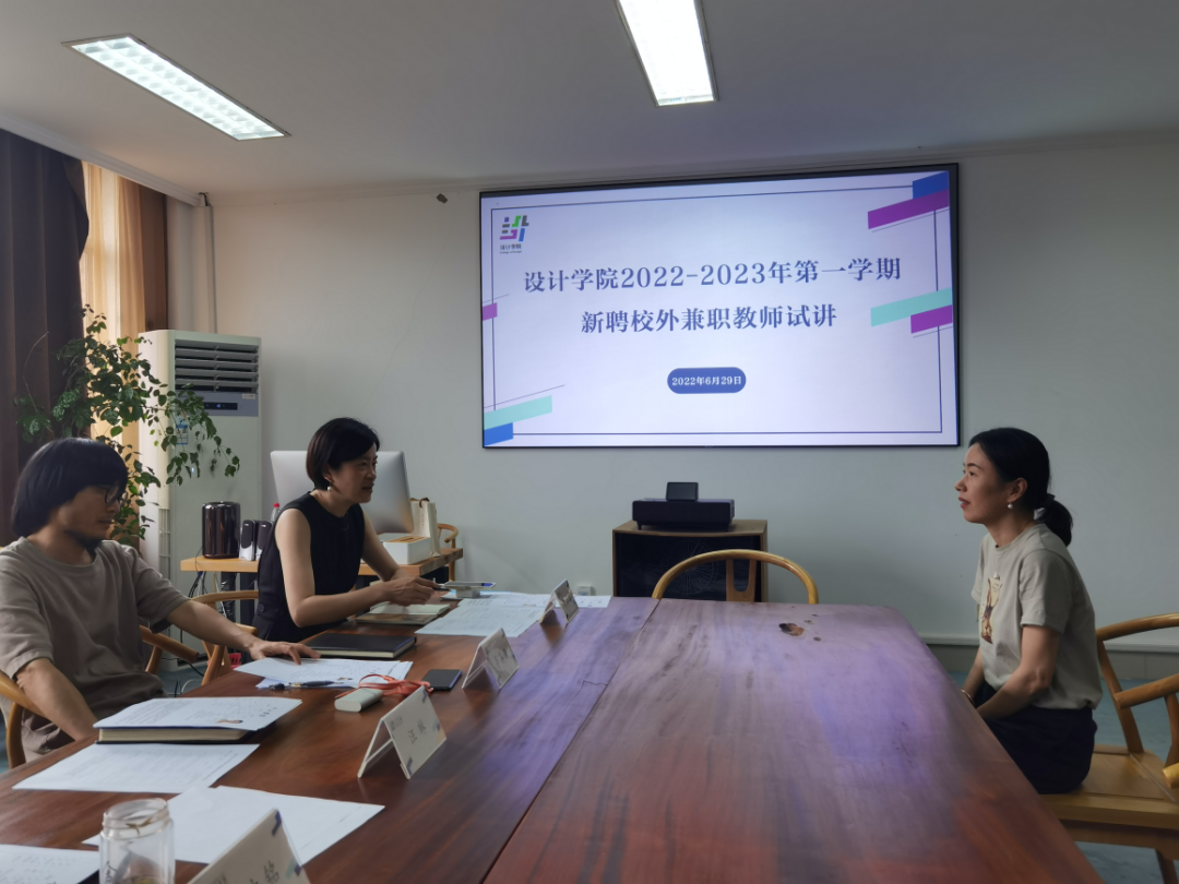 为进一步规范管理设计学院校外兼职教师的聘任工作,近日,设计学院开展2022-2023学年第一学期新聘校外兼职教师试讲工作。学院领导班子、部分教研室主任参与试讲听课。