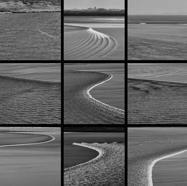 《回头潮》的创作形式是新颖的,改变了以往的构图方式,采用方形构图,将片段拼合成九宫格的形式,将潮水的形式感衔接在一起。