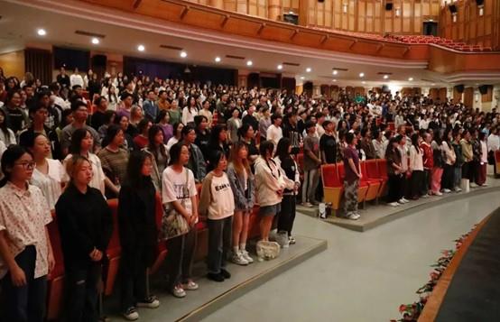 全体新生与班主任和班助合影,大会在悠扬的的校歌声中落幕。