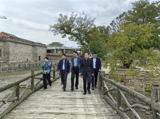 会前,施俊天一行来到盐官音乐古城,详细了解考察音乐古城项目建设进展情况。
