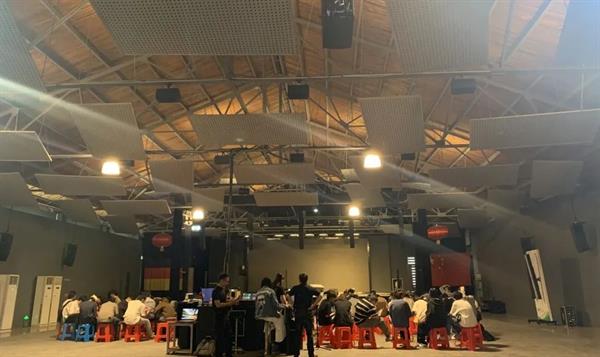 试听现场的音箱系统主要是M-F3A Pro ——全新增强版有源线阵扩声系统、M-系列无号角有源阵列系统,给了师生们优质的视听体验。师生们还在演播厅进行沉浸式的播放体验,切身感受音响的魅力。