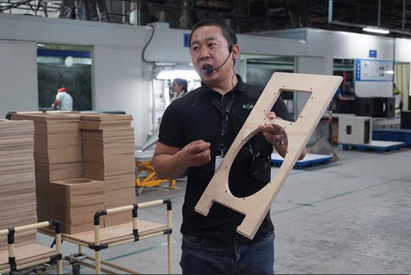 通过参观六大车间的流水线工作,聆听各车间负责人的详细解说,师生们直观地了解了一个音箱的生产全过程。