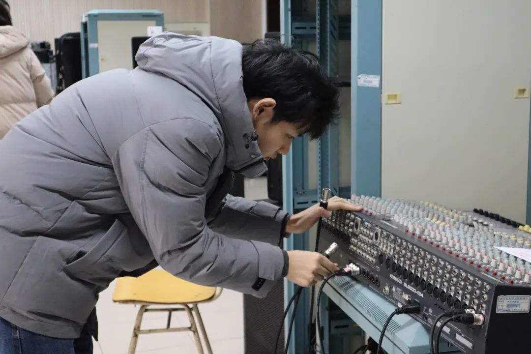 12月16日上午10:00开始进行调音台的实操考试,每位考生需要在规定的时间内,根据考题将调音台的系统连接好,并且完成调音试音的过程,最后由考官老师“一对一”进行打分。