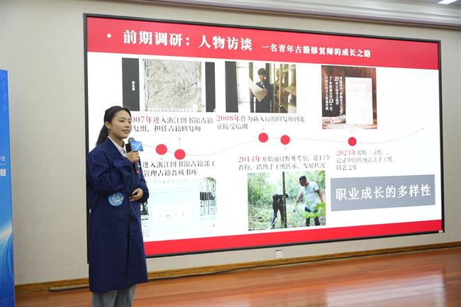手工艺学院2022级文物修复与保护专业学生顾渝泺在展示中讲到受《我在故宫修文物》纪录片的启发,在校期间淬炼文物修复技能,积极参与实践,表达了立志成为一名基层古籍修复师的愿望,凭借精彩的表现获得银奖。音乐学院2022级音乐表演(声乐)专业学生周俐彤和戏剧影视学院2020级模特与礼仪专业学生余羚瑄均获得铜奖。