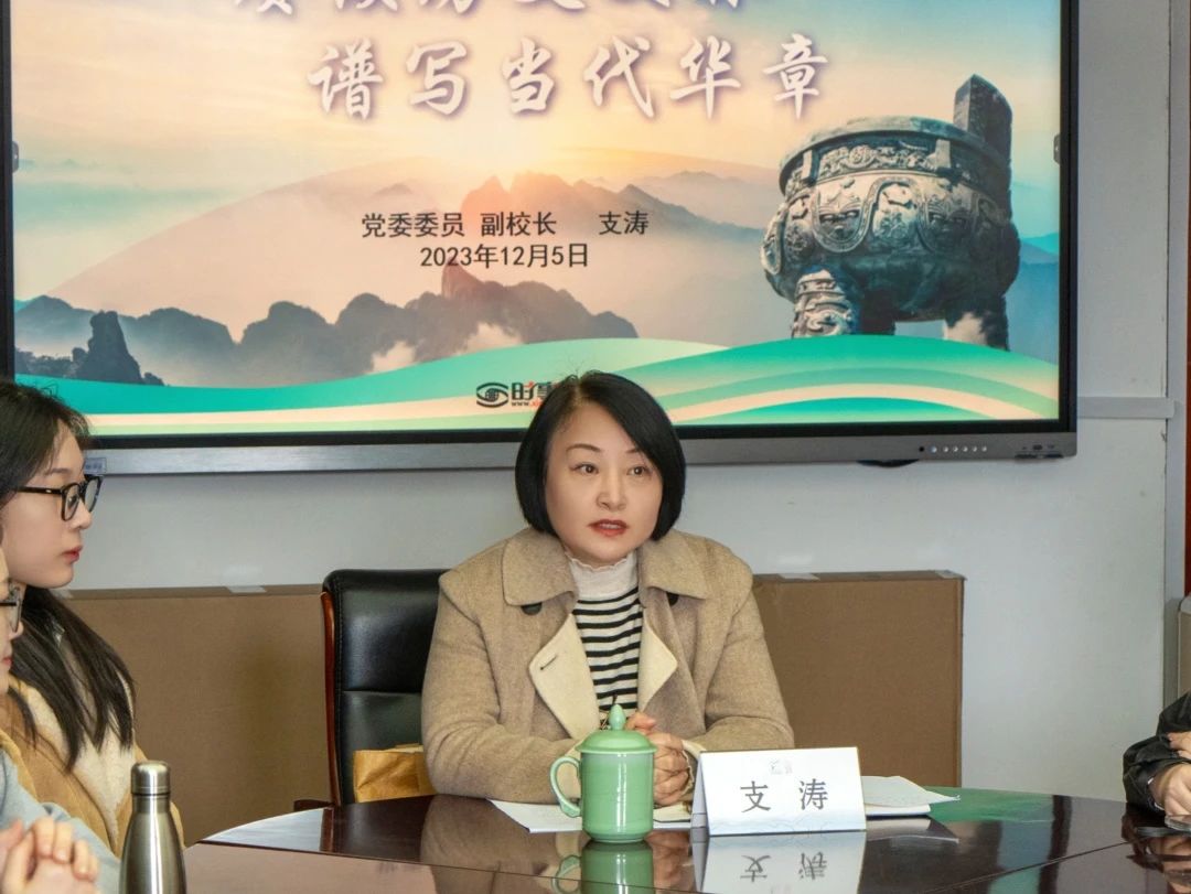 12月5日,21戏曲表演甬剧(校外)班学生回校,开展毕业季学业指导工作。校党委委员、副校长支涛亲切看望学生,了解学生在宁波甬剧团的学习生活情况,并为学生上题为《赓续历史文脉 谱写当代华章》的形势与政策课。