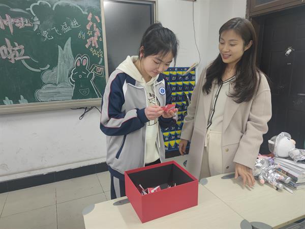 班主任为同学们准备了“惊喜盲盒”,学习用具、生活用品、防疫物资等惊喜随机发放。盲盒如人生般充满了许多不确定性,愿同学们都能在不确定性中寻找确定性,让抽取盲盒的惊喜与甜蜜陪你整个四季。