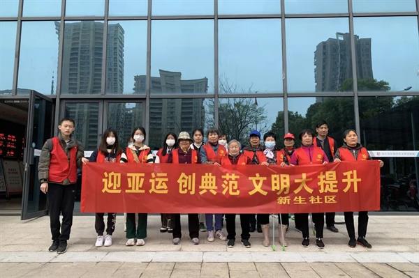同学们在志愿服务活动中积极参与环境整治、文明引导,清理草坪里的塑料包装袋、马路上的烟头,走进居民单元楼有序摆放非机动车辆、整理楼道内堆放的杂物等,为迎接亚运会,营造整洁的居住环境。