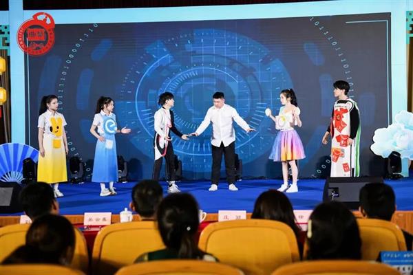 相声《智能时代》由表演艺术专业教师齐帅创作,教学团队共同打造的原创作品。表演艺术专业2019(五年一贯制)班学生厉青轩、周芫若冰、陈佳慧、汪施琦、章泽能、屈康康表演,李嘉晟同学担任音效。本作品将“课程思政”融入到专业教学当中,并把课堂上的专业知识呈现在舞台上,获得了观众和评委的一致好评。