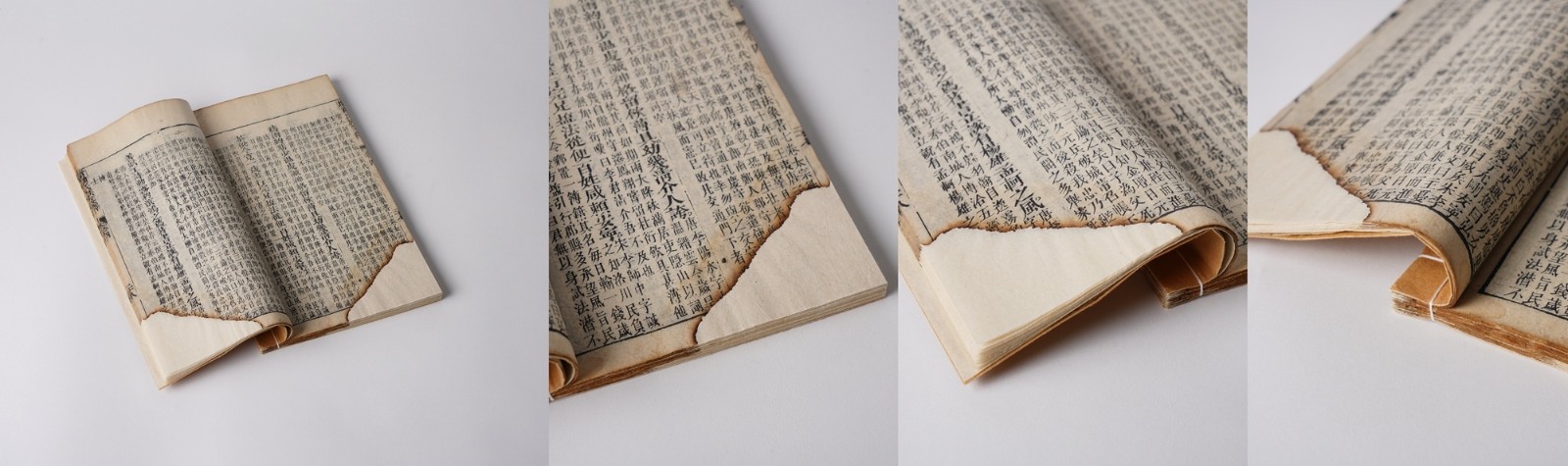 古籍装帧是一门独到的传统技艺,传统古籍的装帧形式有简策、卷轴装、经折装、梵夹装、旋风装、蝴蝶装、包背装、线装、金镶玉等。线装书是我国古代装帧形式最为广泛的装帧形式。此次竞赛分为指定形式四眼线装古籍,自选形式包背装或蝴蝶装古籍,作品要求书芯平整,书口、书背平直,包角严紧等。考查书口、栏线、纸捻、天地头、书背、包角、书皮、订线等各个细节。